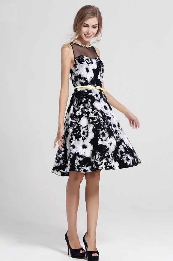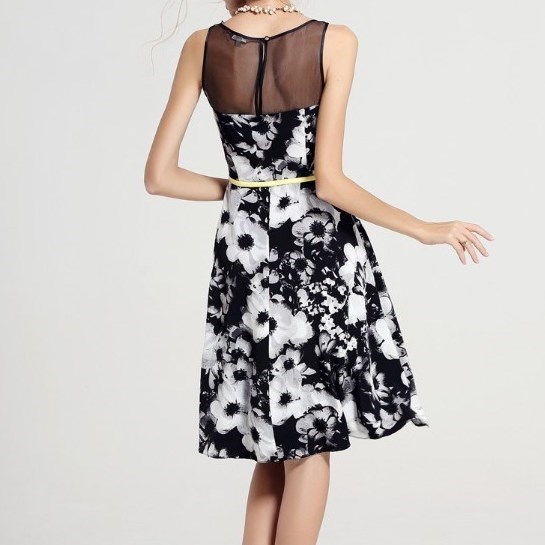 シフォン切替フラワー大柄模様デザイン