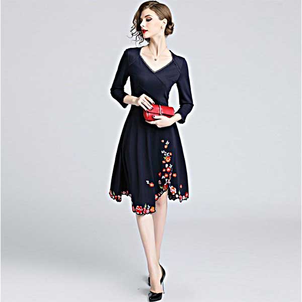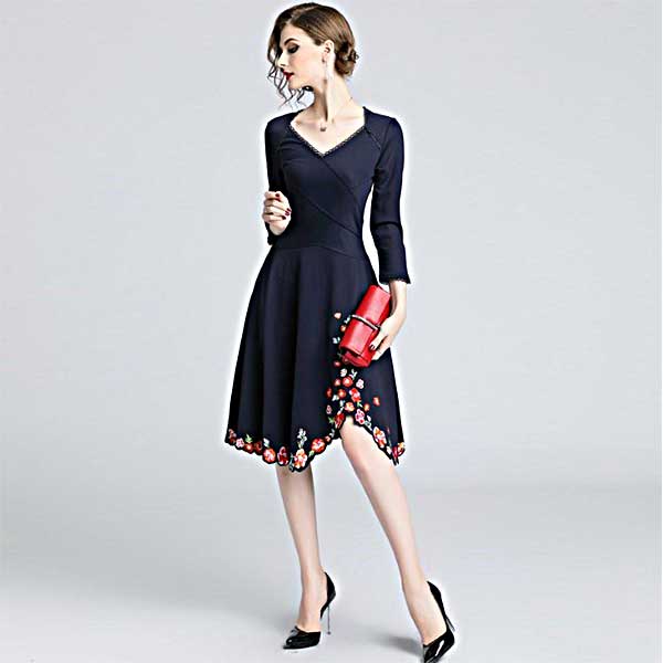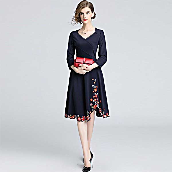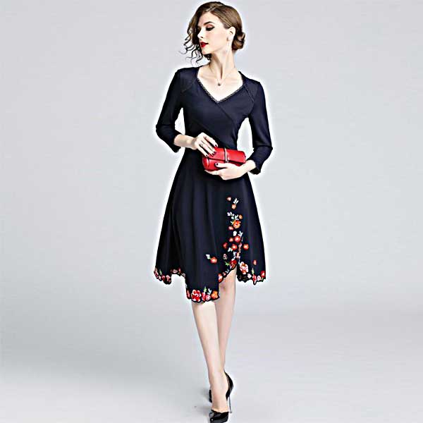 ワンピース ドレス レディース Aライン 刺繍 カシュクール 大きいサイズ パーティー お出かけ 同窓会 お食事会