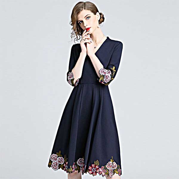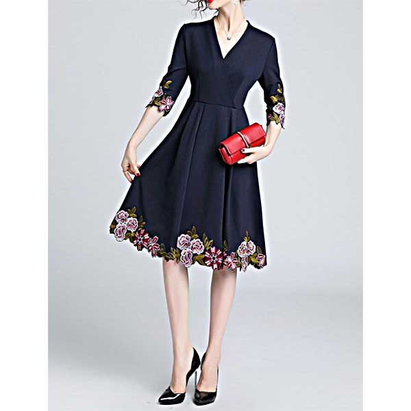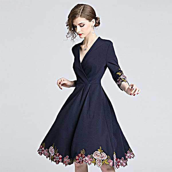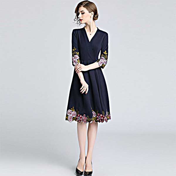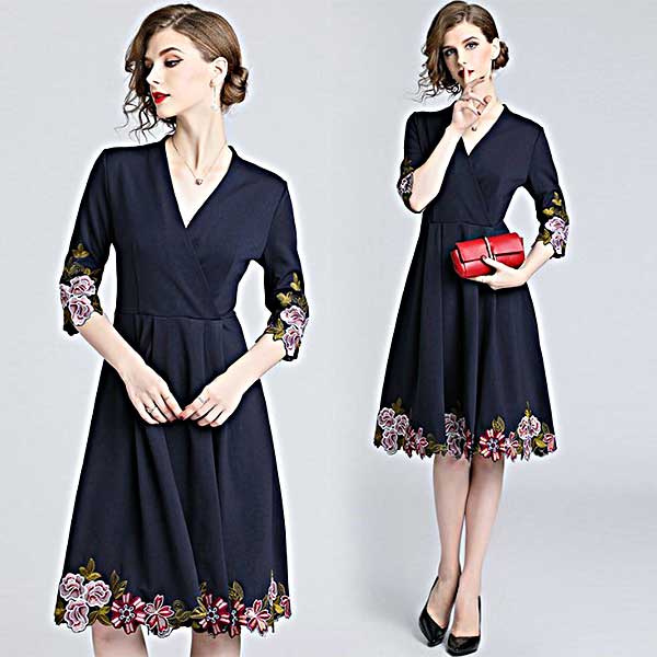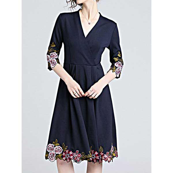 ワンピース ドレス レディース Aライン 刺繍 カシュクール 大きいサイズ パーティー お出かけ 同窓会 お食事会