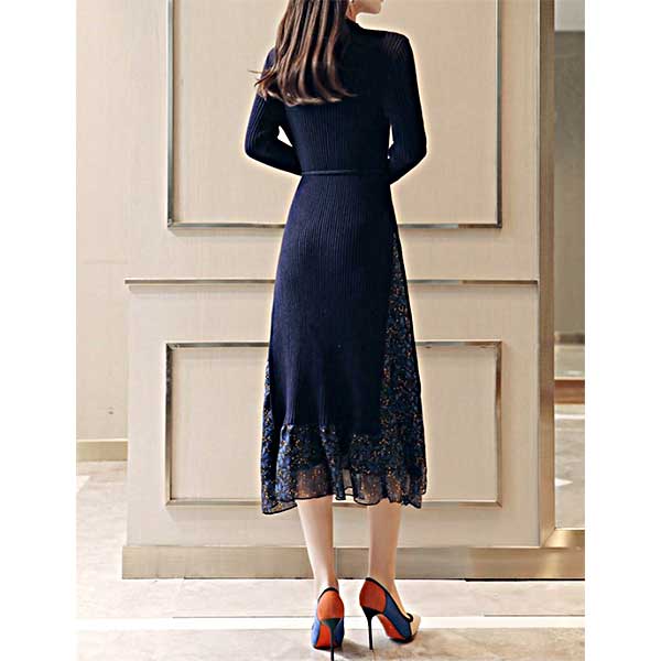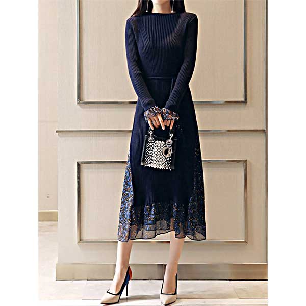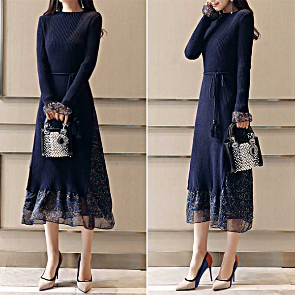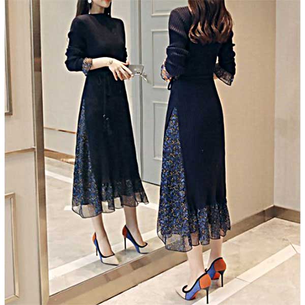 オフィスでも好評 ニット 長袖のパーティーワンピース【ON283】
