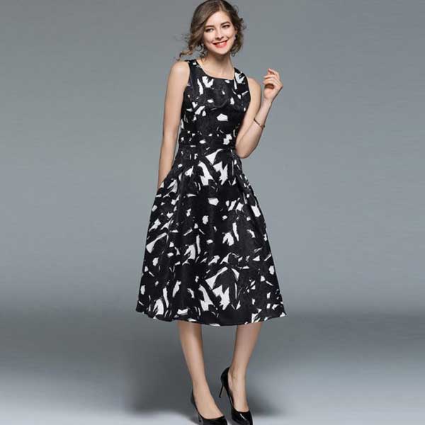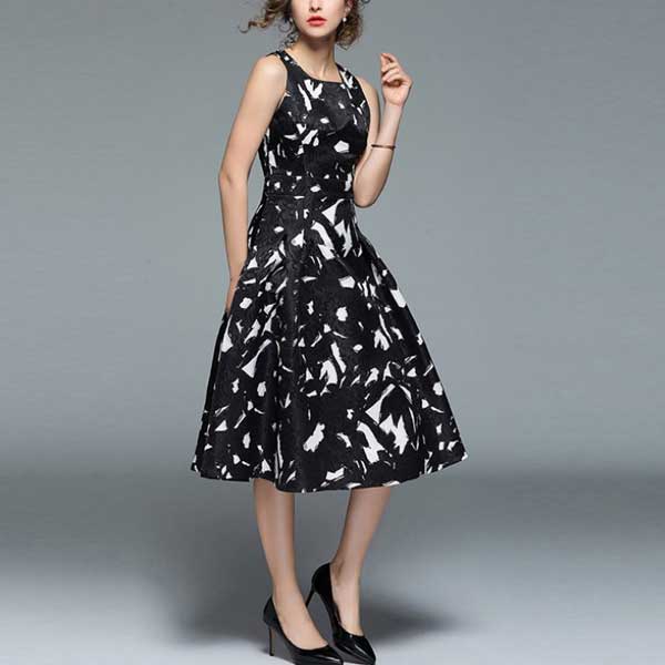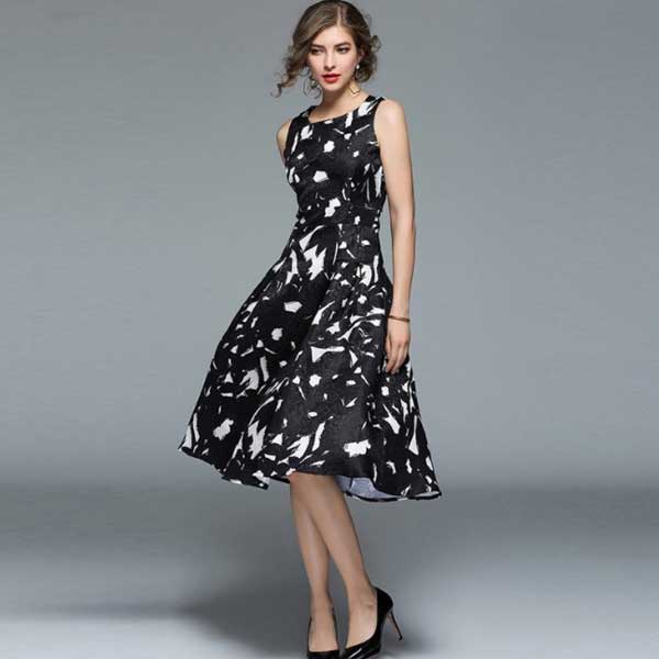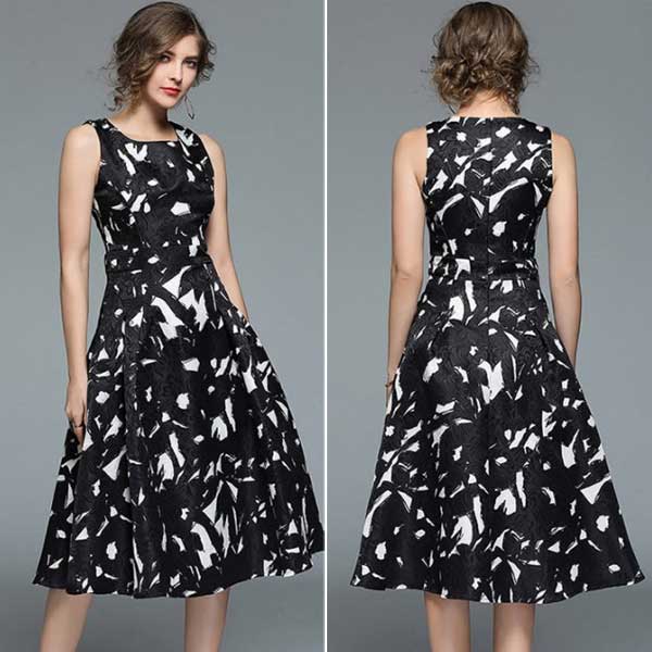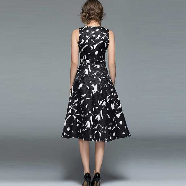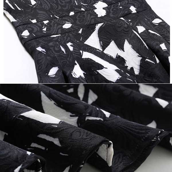 ジャガードのシックな風合いが素敵な黒 大きな花柄のパーティードレス【ON324】