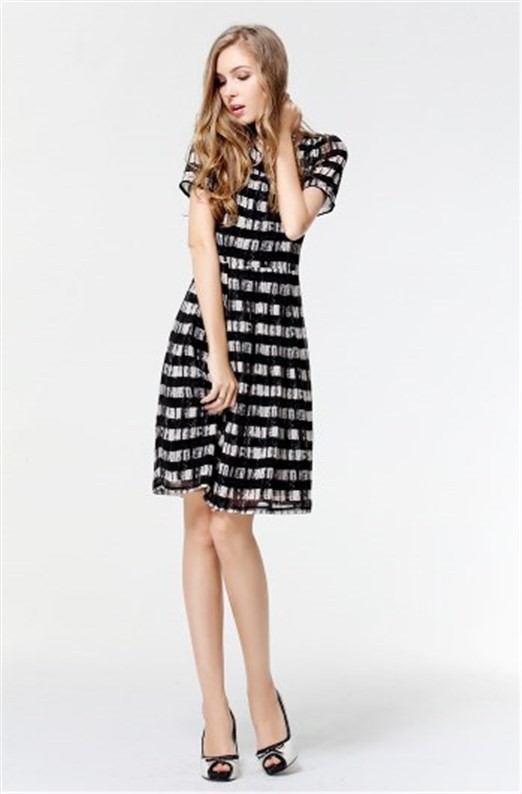 清楚なボーダー柄 着痩せ効果のある Aライン