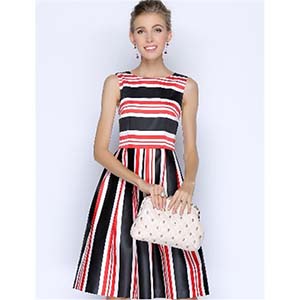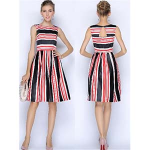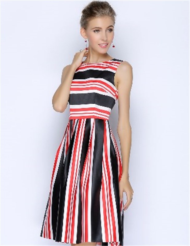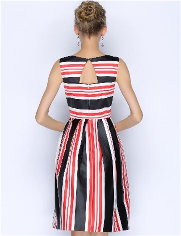 結婚式 ワンピース パーティードレス 20代 お呼ばれ 二次会 ボーダー ノースリーブ 膝丈 30代 40代 50代 大きいサイズ 夏