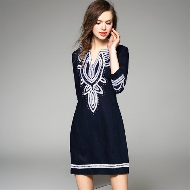 ワンピース お呼ばれ 二次会 結婚式 パーティー 春 夏 袖付き 無地 刺繍 膝丈 きれいめ Aライン 20代 30代 40代 50代 大きいサイズ