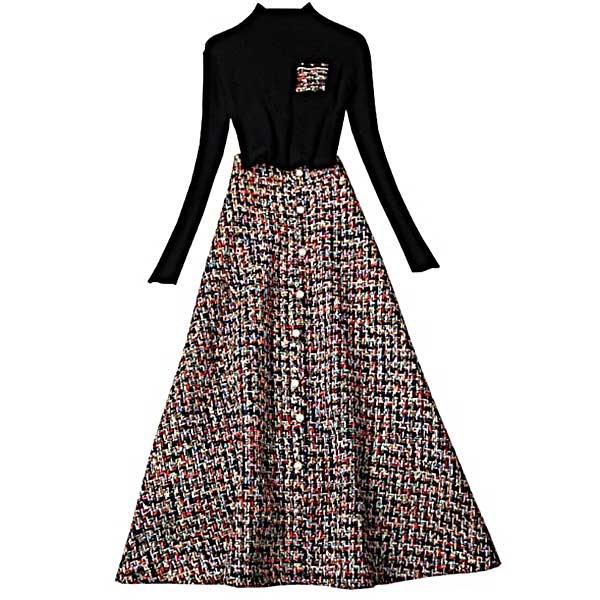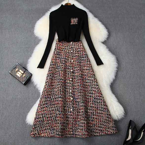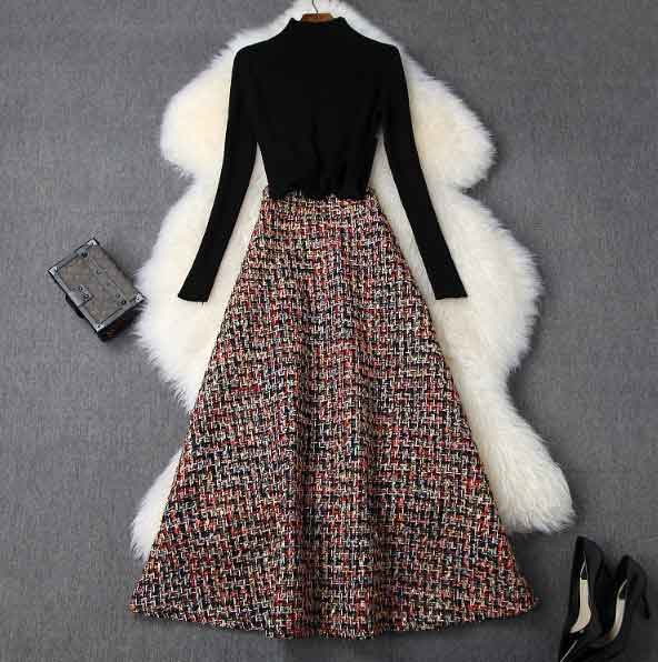 & Free Shippingニットとツイードスカートのセットアップ