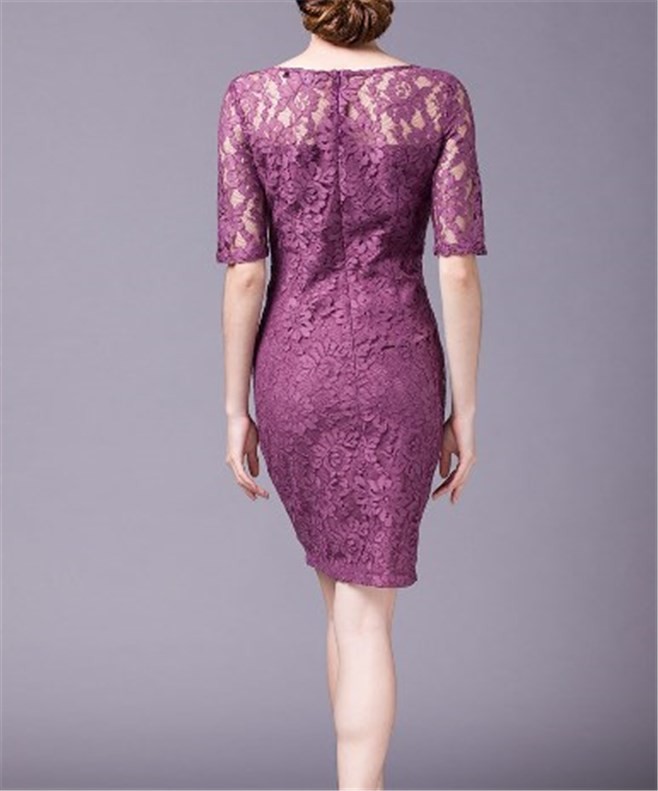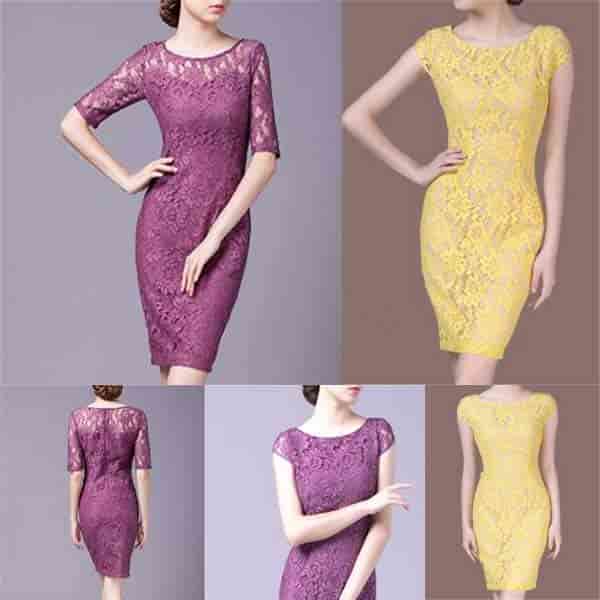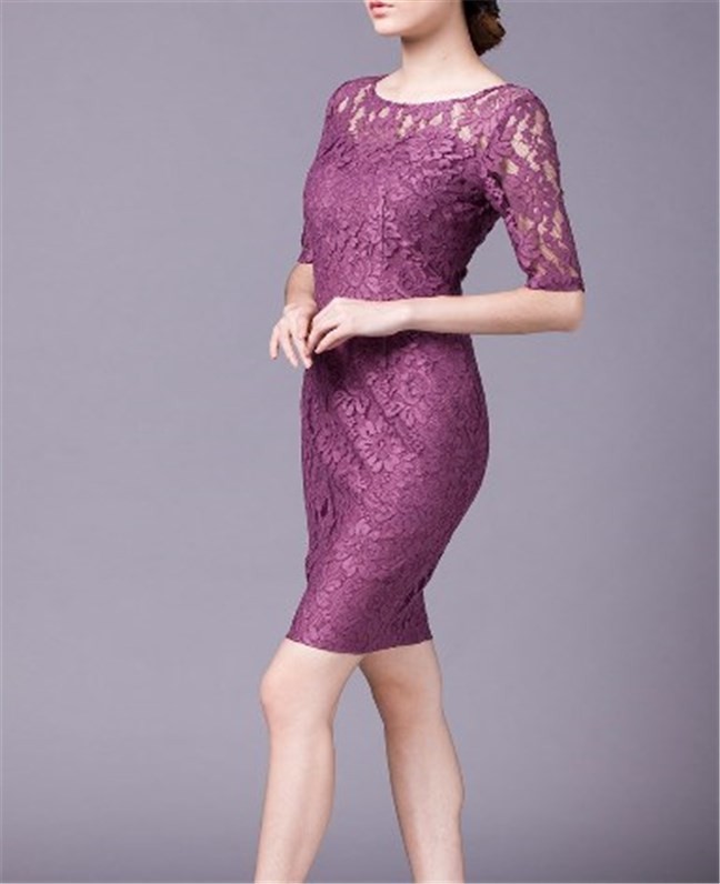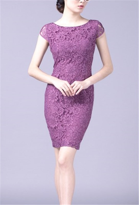 綺麗なパープル イエロー レースのタイトワンピース[OF12]