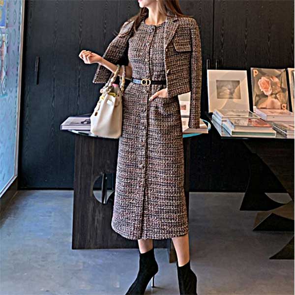 セットアップ ツイード ワンピース ジャケット スーツ 秋冬