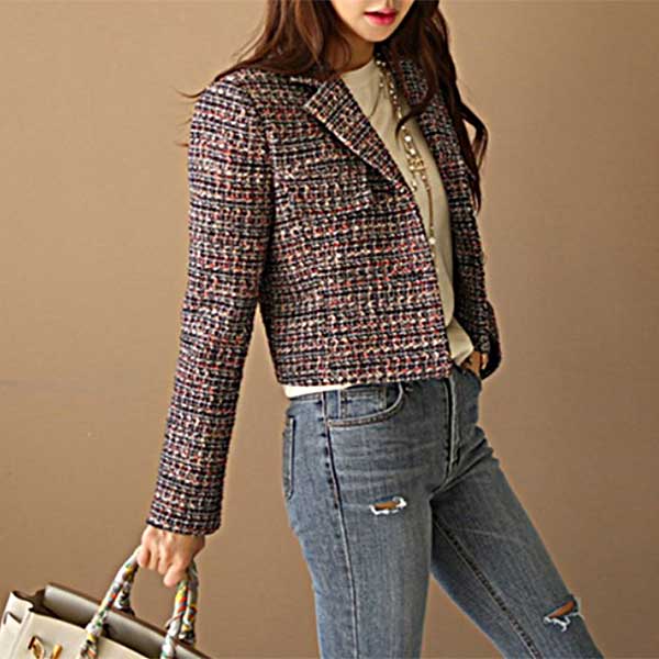 季節感のあるツイードのセットアップ。今年らしい長め丈のワンピースとショート丈のジャケットがバランスよくスタイルアップしてみえるデザインです。・サイズ(単位cm):[ジャケット]肩幅/バスト/袖丈/着丈