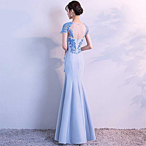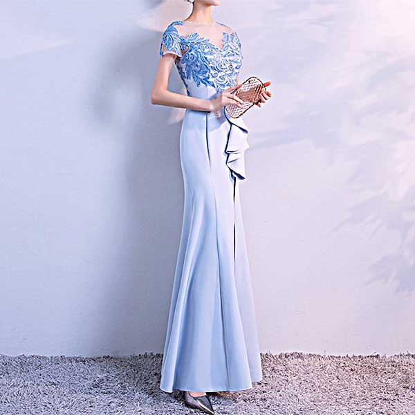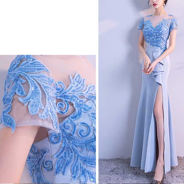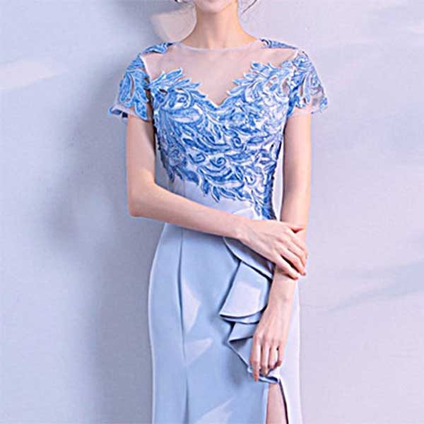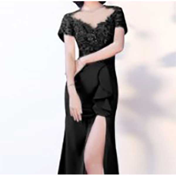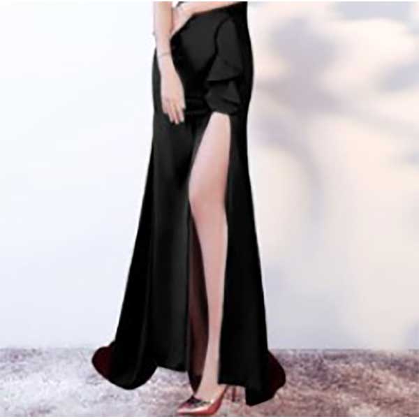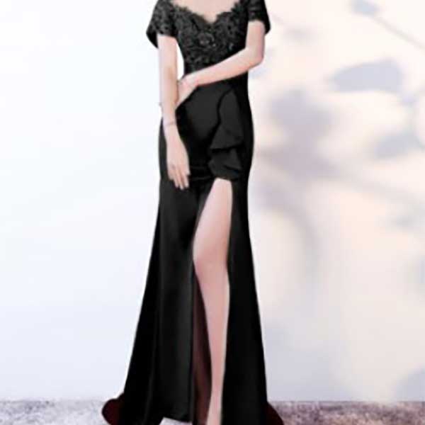 ブラックの大胆 前スリットのロングドレス[DRA98]