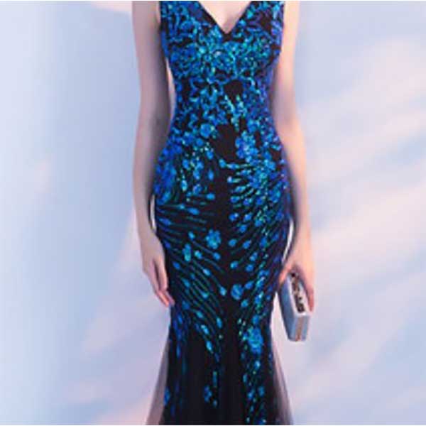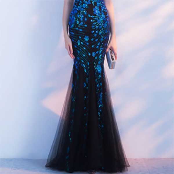 ブラックにブルーが映えるイブニングドレス[DRA52]