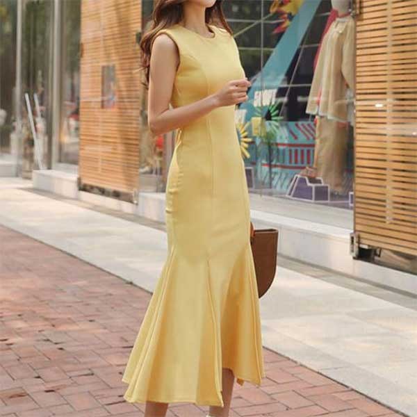 マーメイドとイエローが素敵なタイトワンピース[OH76]