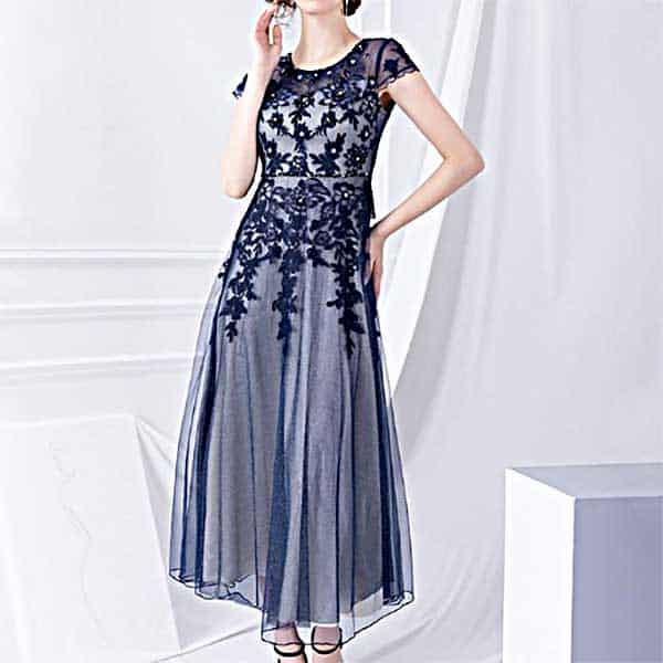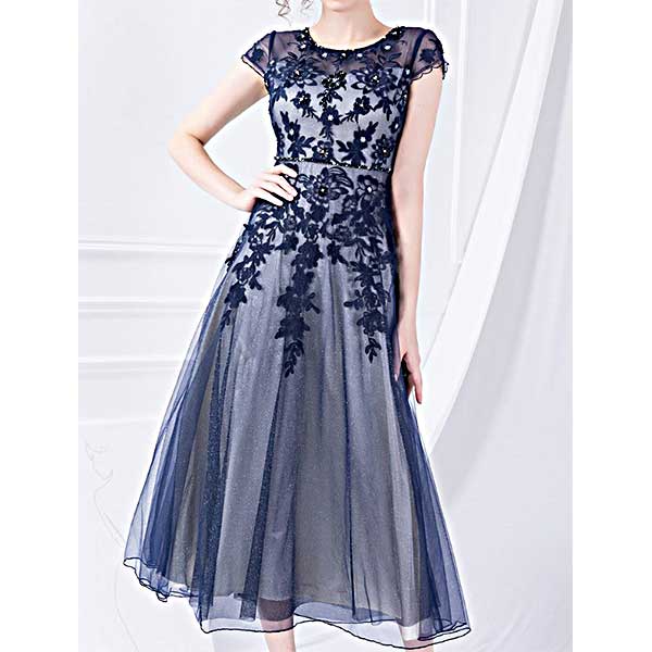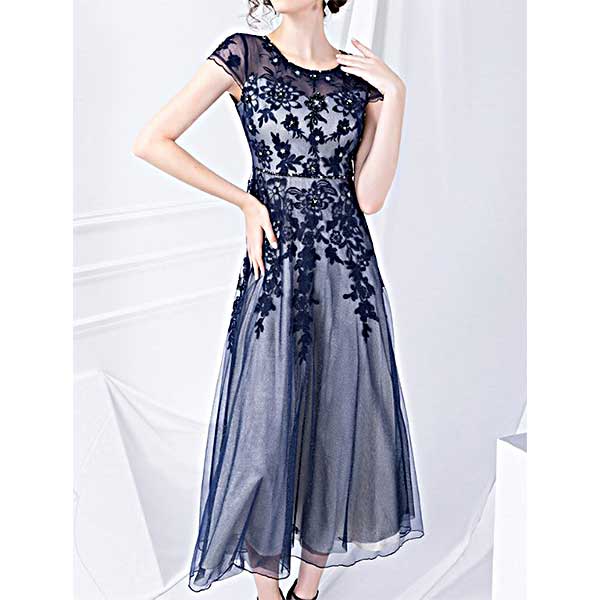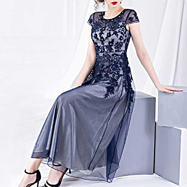 気品あるオーラが漂うネイビーのパーティードレス[OZY43]