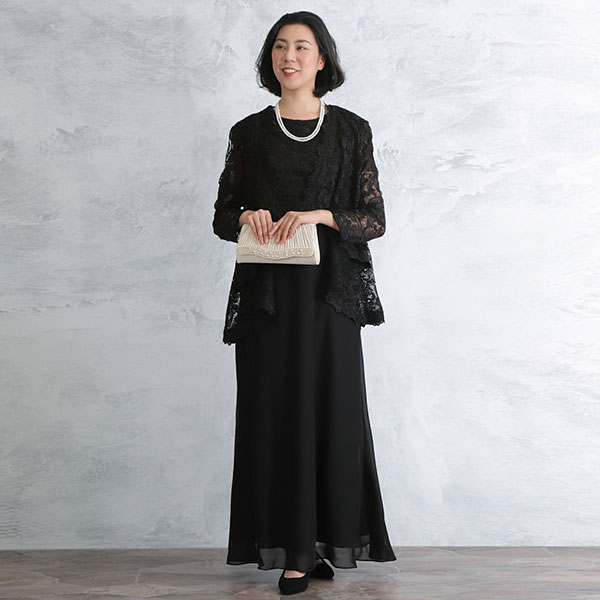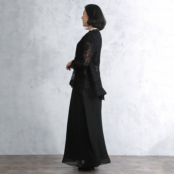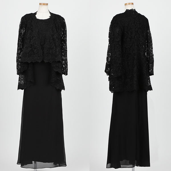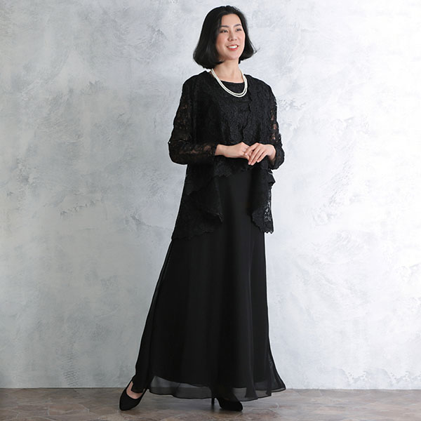 結婚式 母親 洋装 親族 ロングドレス マザーズドレス 上品 留袖とのバランス良いアンサンブル ジャケット レース 甥 姪 フォーマル 袖あり 演奏会【DRB54】