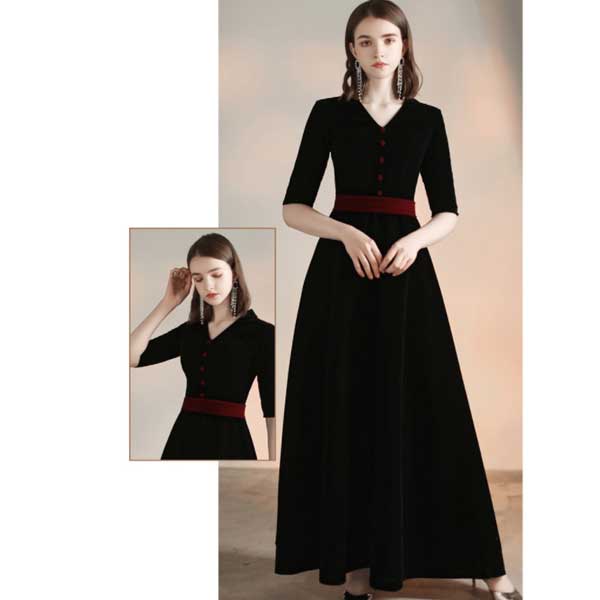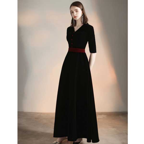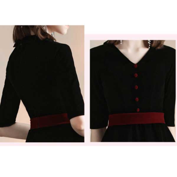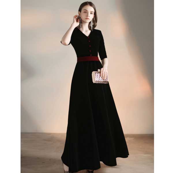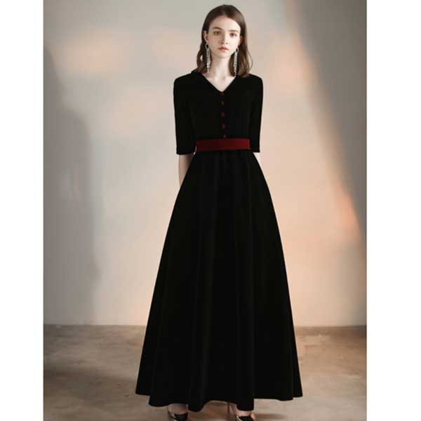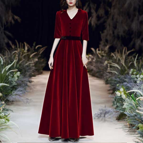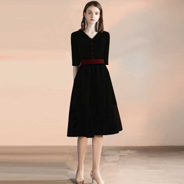 パーティーやお食事会などに Vネック半袖のベロアドレス[DRB34]
