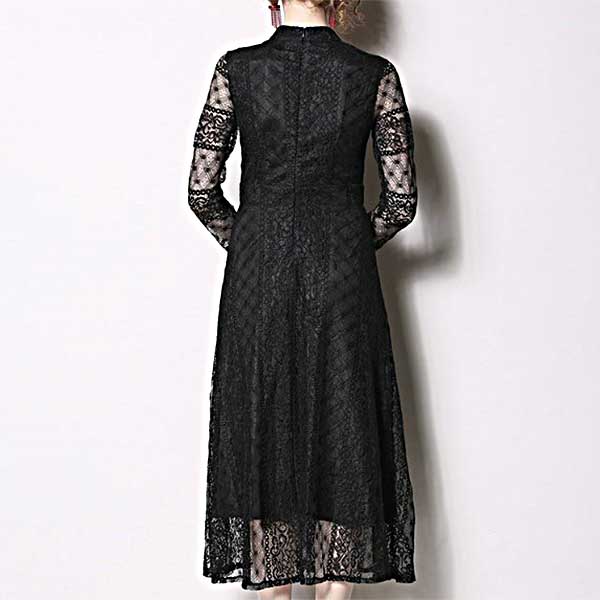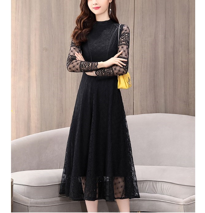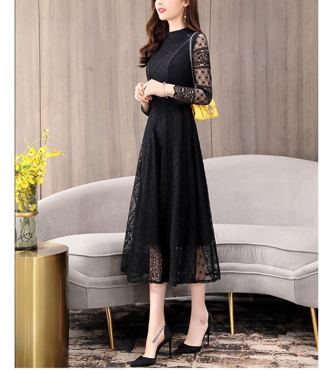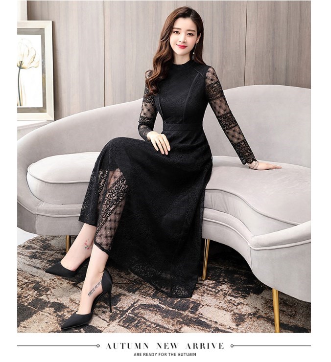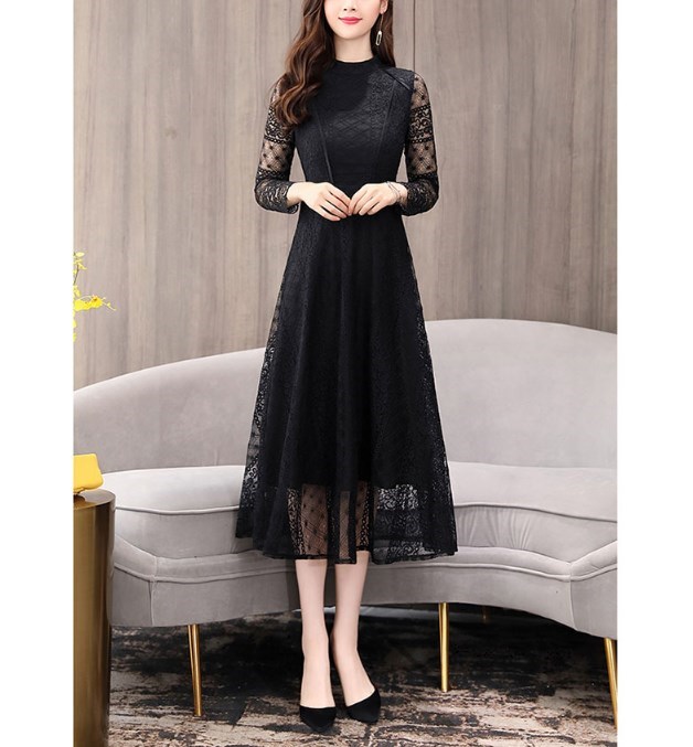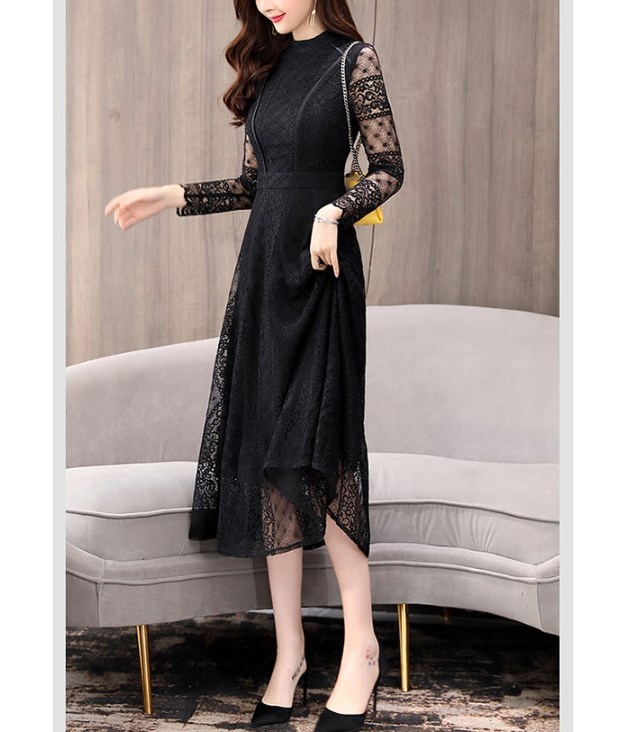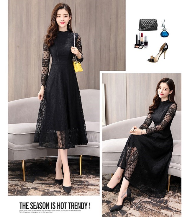 黒の長袖 程よい肌見せ 総レースのパーティードレス[OH97]