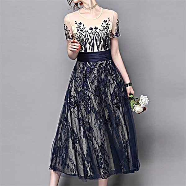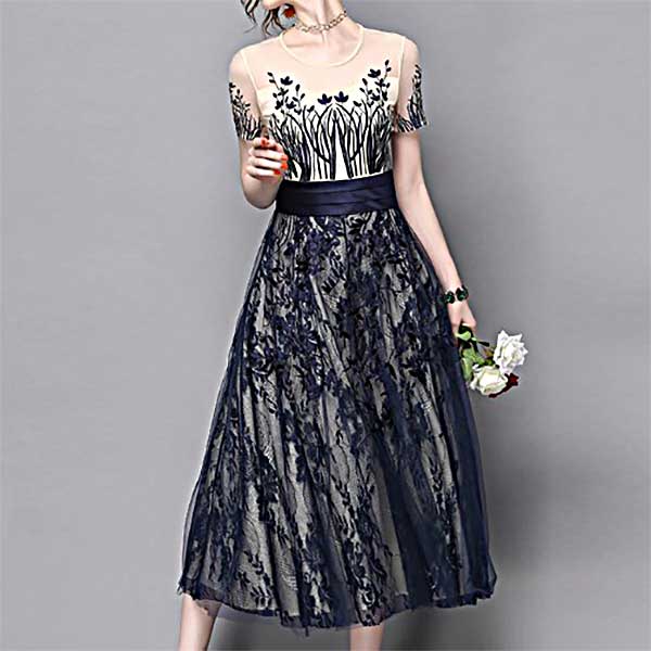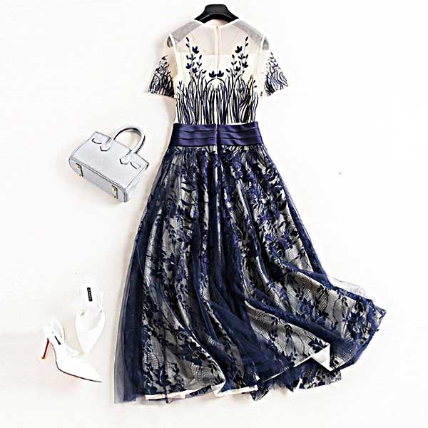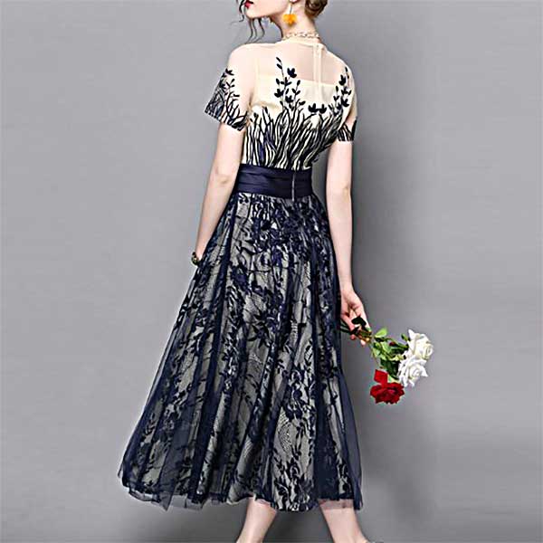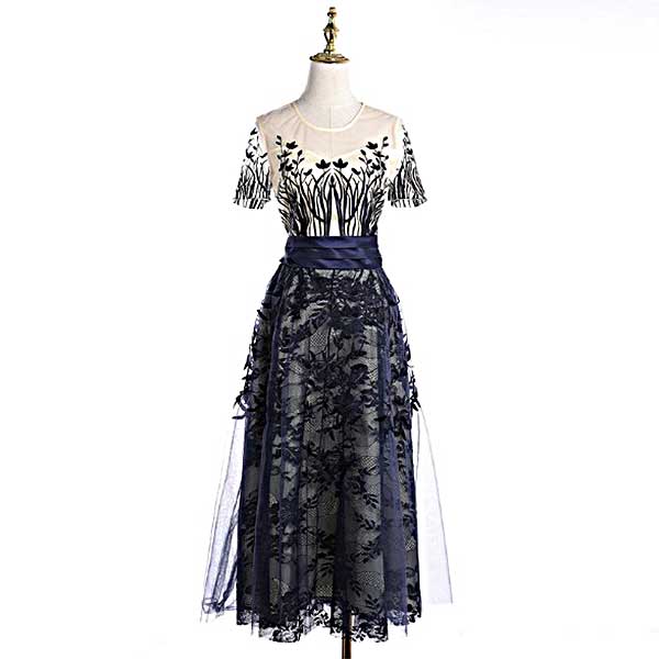 結婚式 ドレス ワンピース パーティードレス フラワー 総レース 袖付き お呼ばれ 二次会 ロング丈 20代 30代 40代 50代 ファッション 大きいサイズ