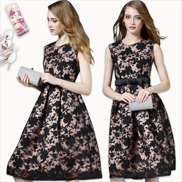 & Free Shipping大人可愛い花柄レース ノースリーブドレス