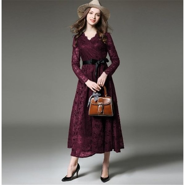 & Free Shippingカシュクール風の襟元がフェミニンなシルエット。大人上品なロング丈デザイン。