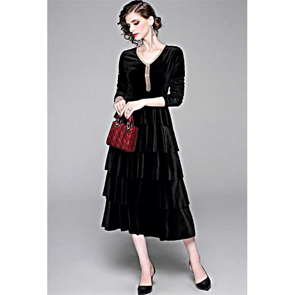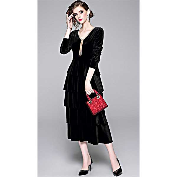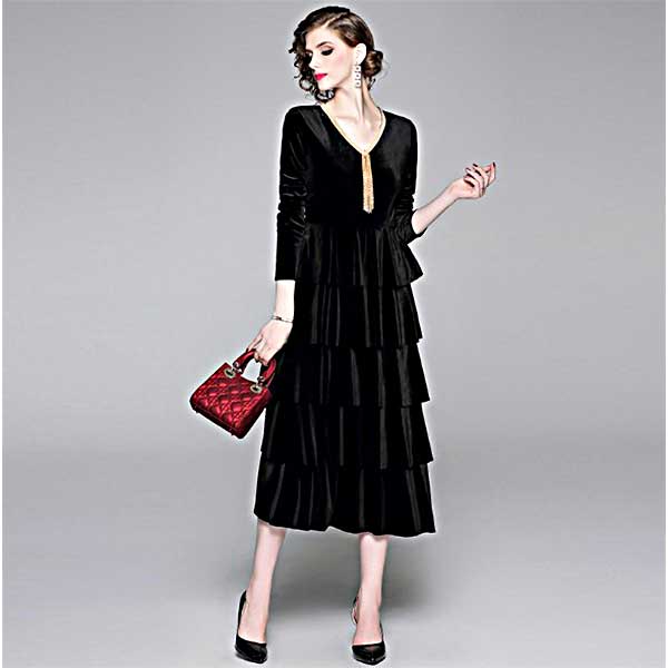 レイヤード ベロア・甘い系のパーティードレス[ON280B]