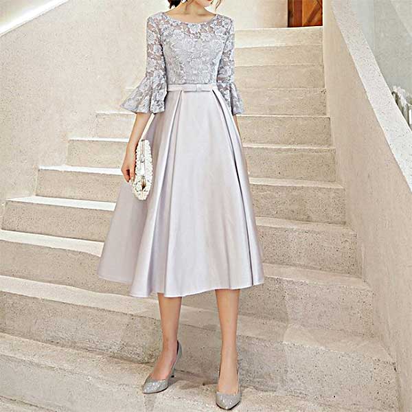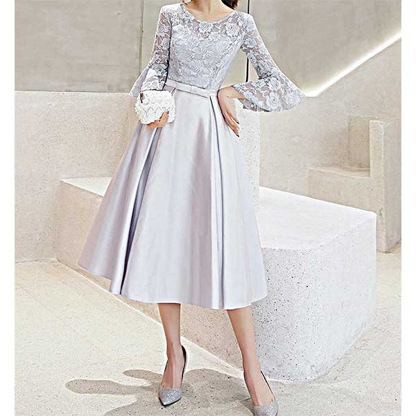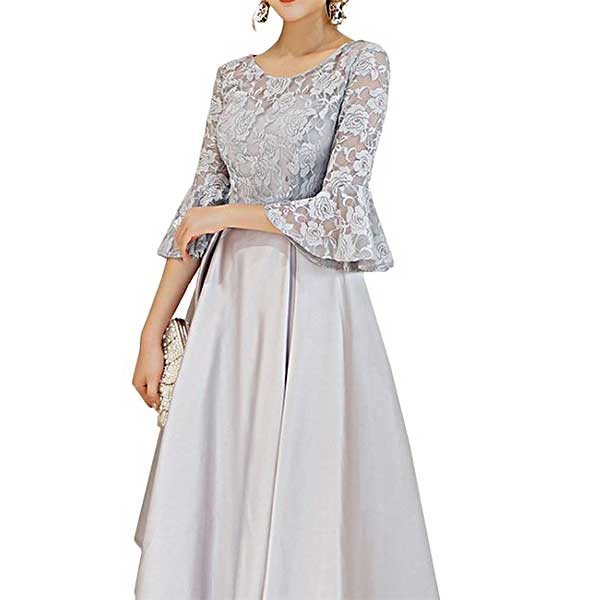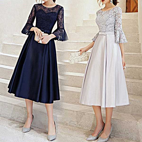 & Free Shippingベルスリーブが素敵なほどよい肌見せが上品・ひざ下丈