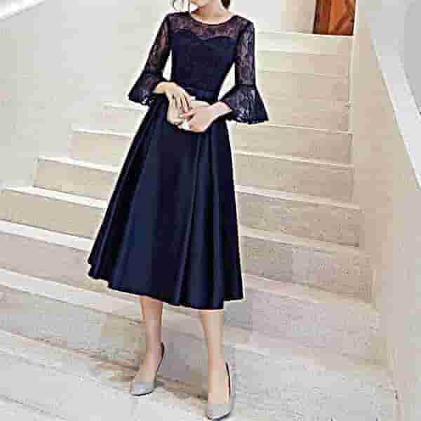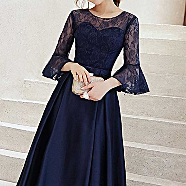 ビスチェ ネイビー シースルーのレースドレス[ON290N]