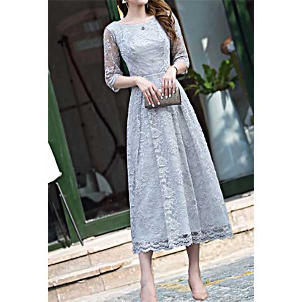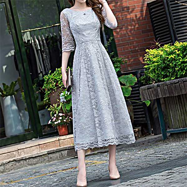 着回し良い シンプル グレーのレースドレス[ON293G]