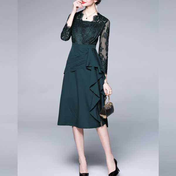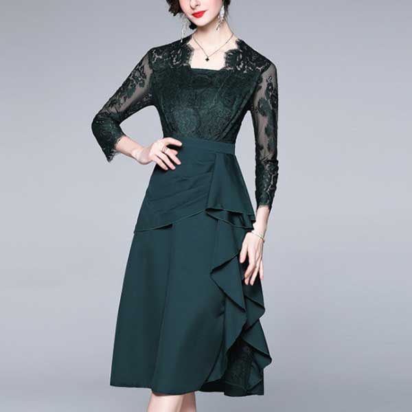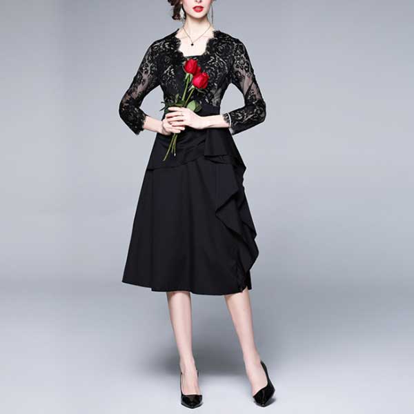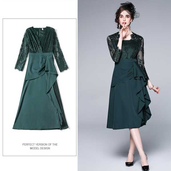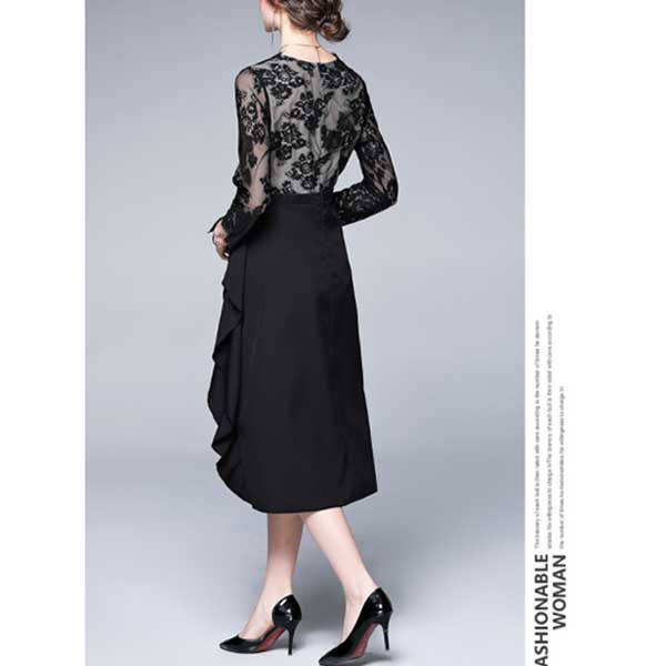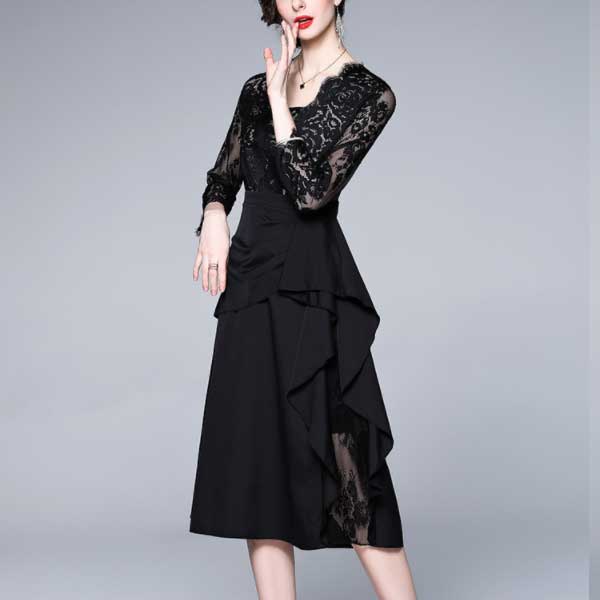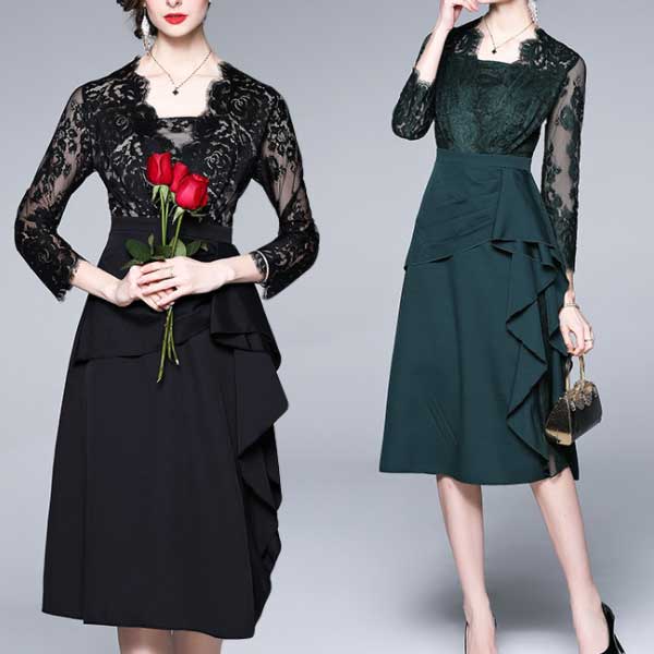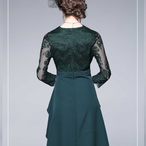エレガントで個性的なレース切替のパーティードレス【ON313】