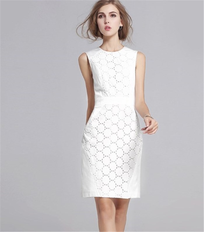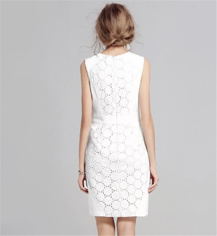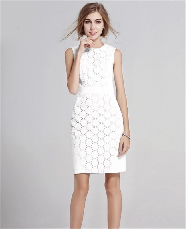 清楚な白 コットンレースのタイトのパーティードレス[OO10]
