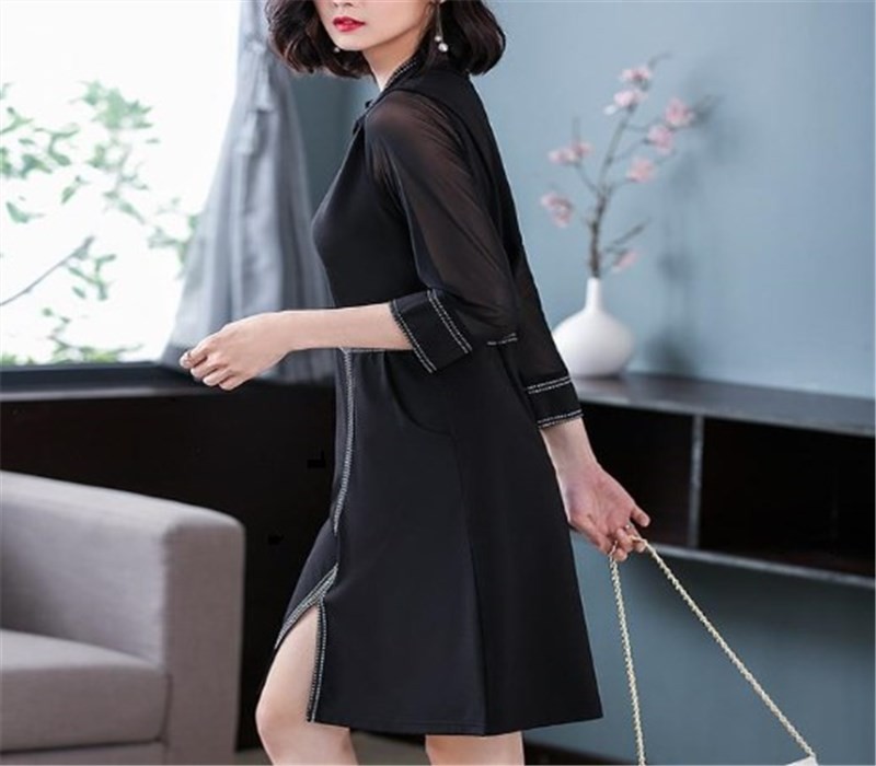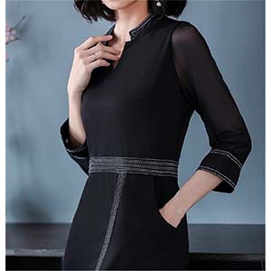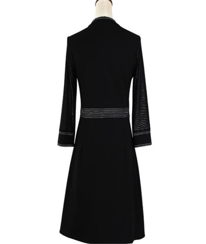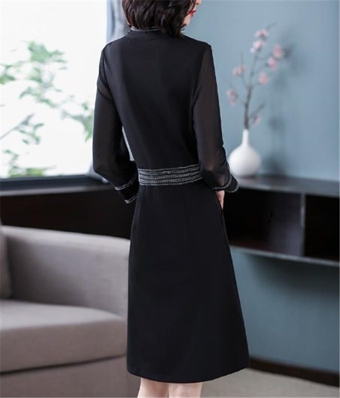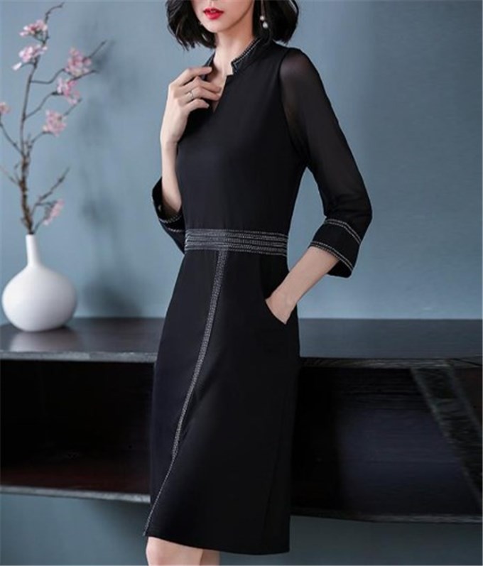 ステッチ使いが上品なフェミニンワンピース。通勤、パーティ、お出掛け、お呼ばれなど幅広く対応できるアイテムとしてお勧めです。・サイズ(単位cm):肩幅/バスト/ウエスト/着丈/袖丈 ・M:37/92/82/92/45.5・L:38/96/86/93/46 ・2L:39/100/90/94/46.5 ・3L:40/104/94/95/47 ・4L:41.5/108/99/96/47.5 ・5L:43/112/104/97/48 ・素材:レーヨン ナイロン ・裏地:あり ・ストレッチ性:なし