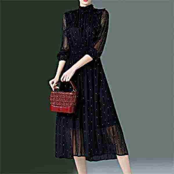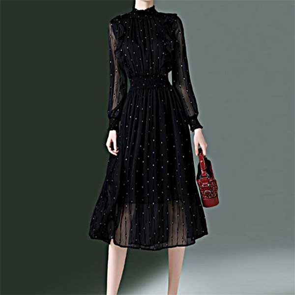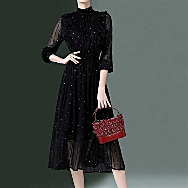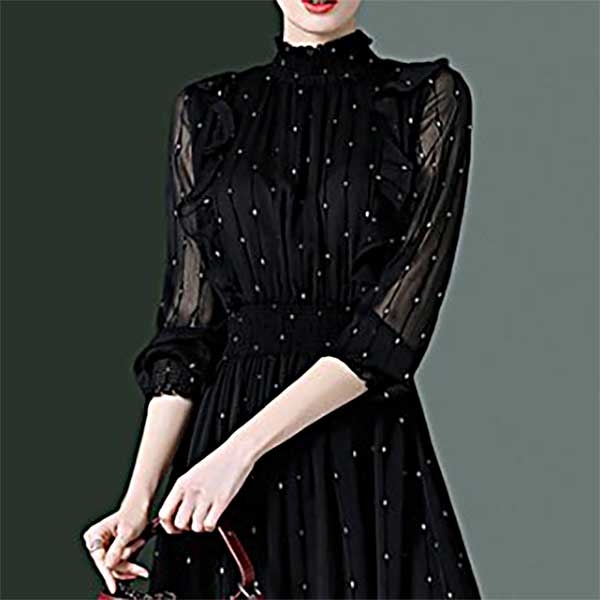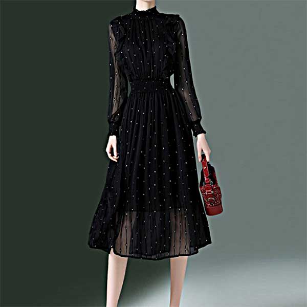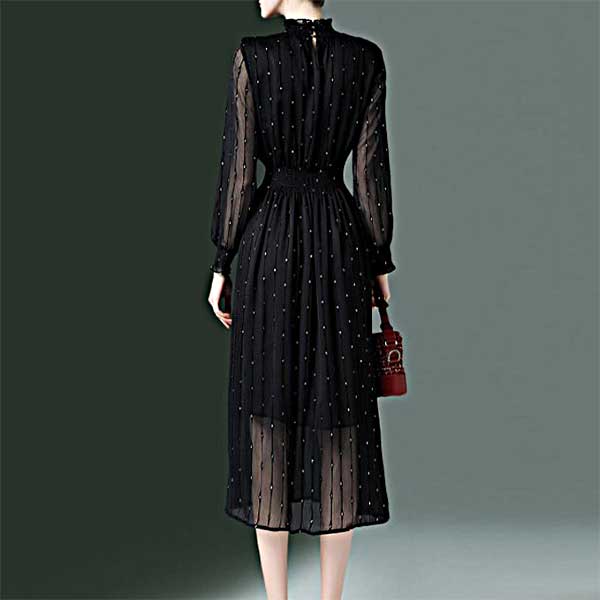 シャーリングデザインが素敵なシフォンのパーティードレス[OP49B]