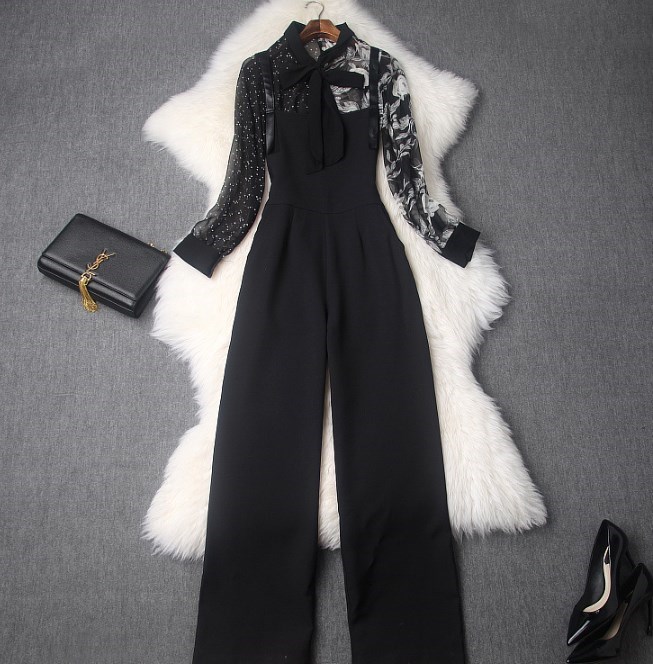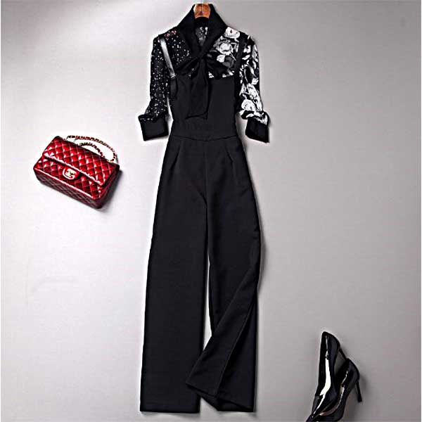 サロペットが大人可愛い 黒のパンツドレス[OY138]