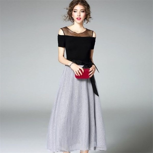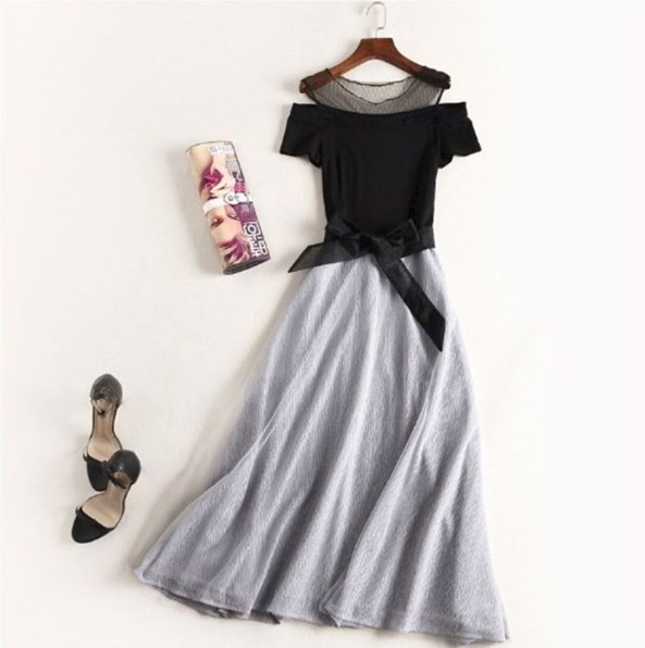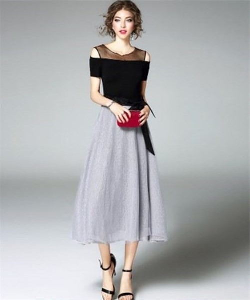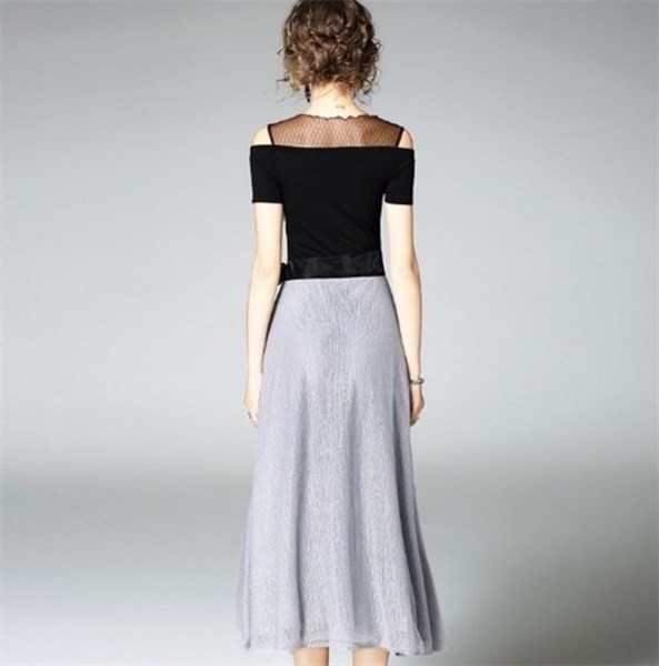 & Free Shippingデザインショルダー シフォン切替ライン