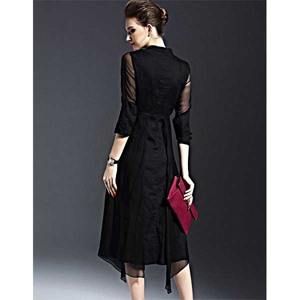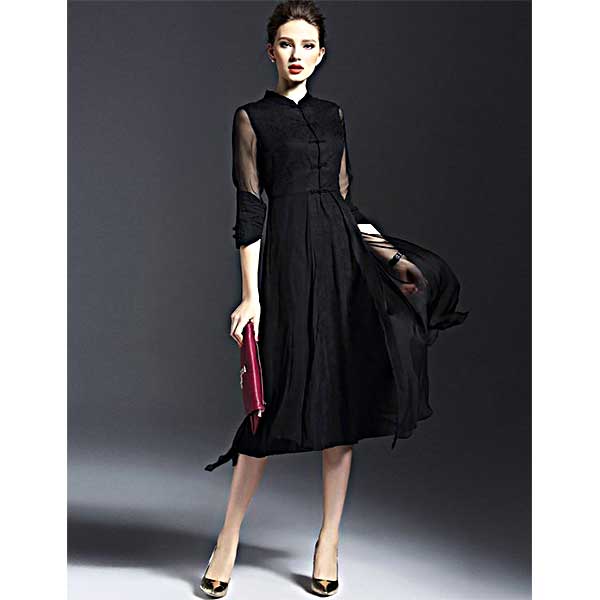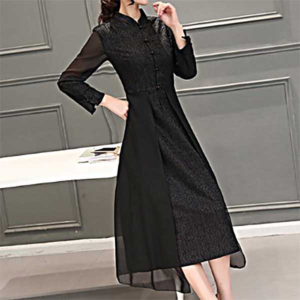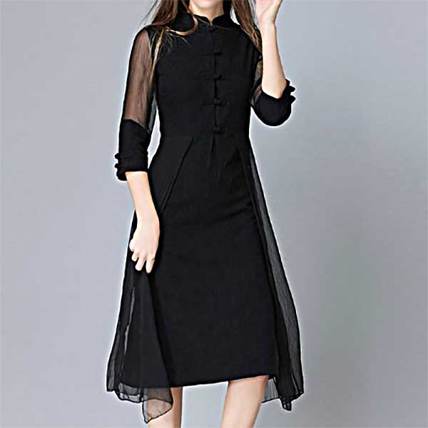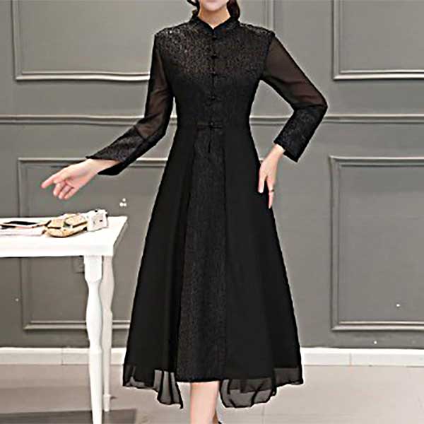 チャイナ風 スタンドカラー 黒のパーティードレス[OZK21-2B]