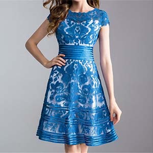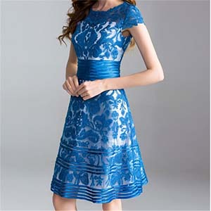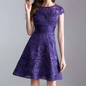 お嬢様風 パープル ブルー 上質素材のレースドレス[OZY19]
