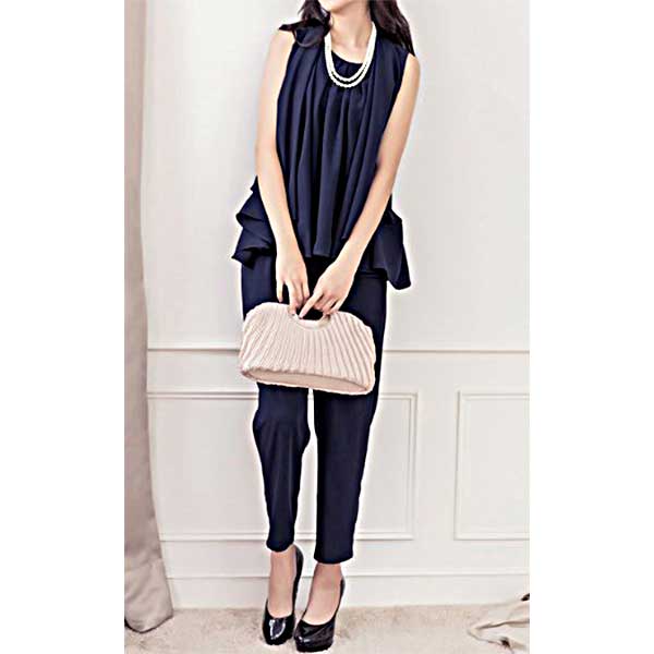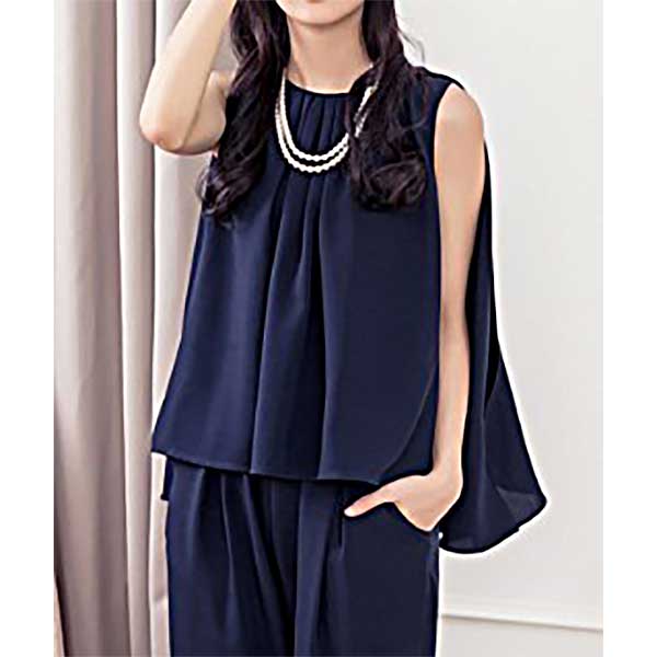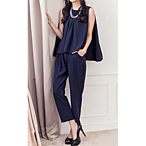 エレガントデザイン ネイビー クロップド丈のセットアップ[PT011N]
