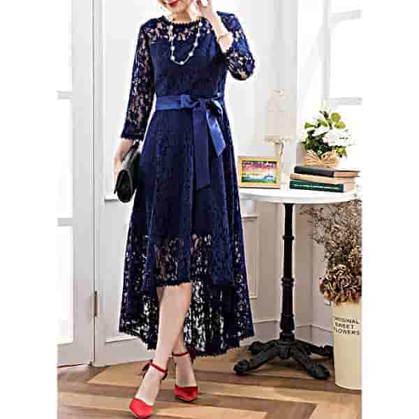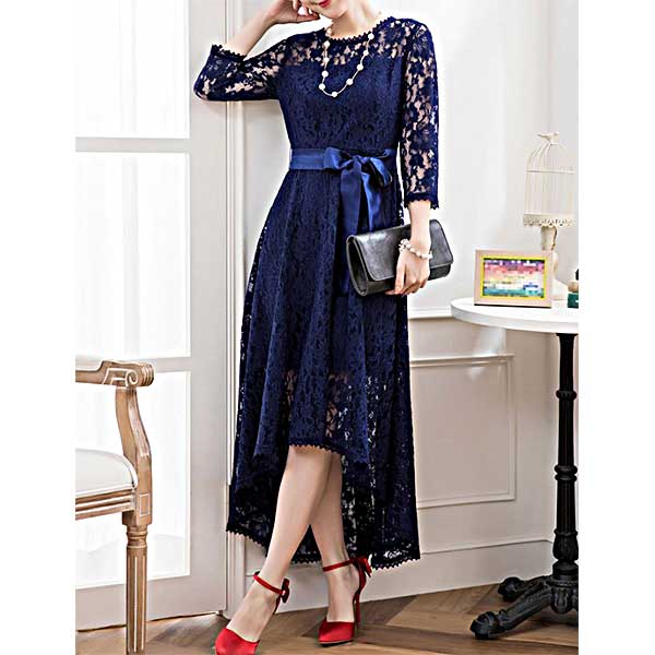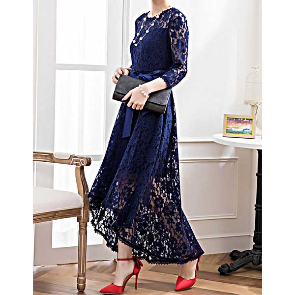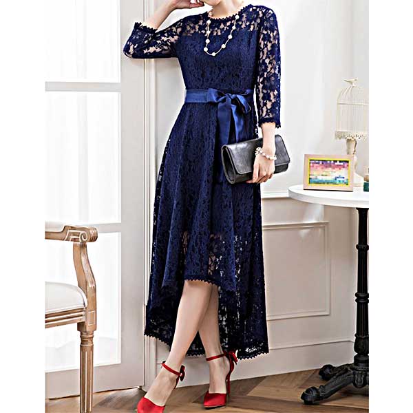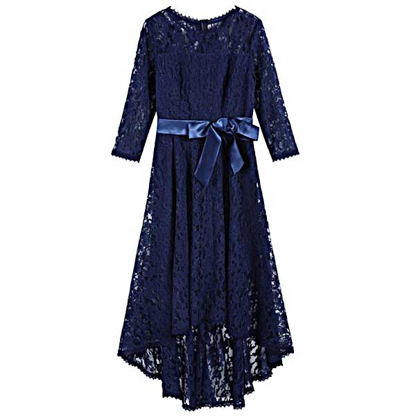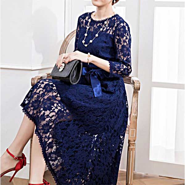 フィッシュテイルのレースドレス|ネイビーのパーティードレス[PS49N]