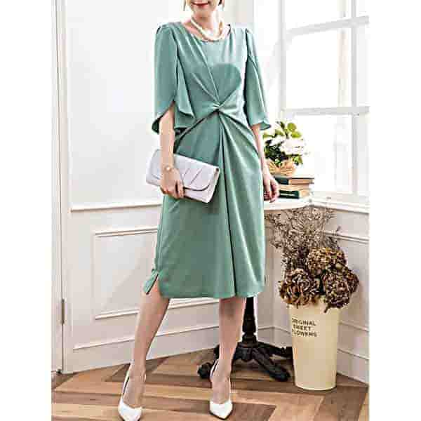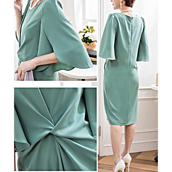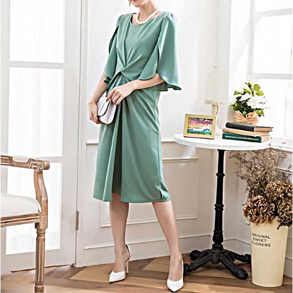 グリーン 体型カバーのフォーマルドレス[PS51]