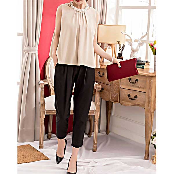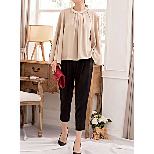 エレガントデザイン ベージュ クロップド丈 セットアップ[PT011B]