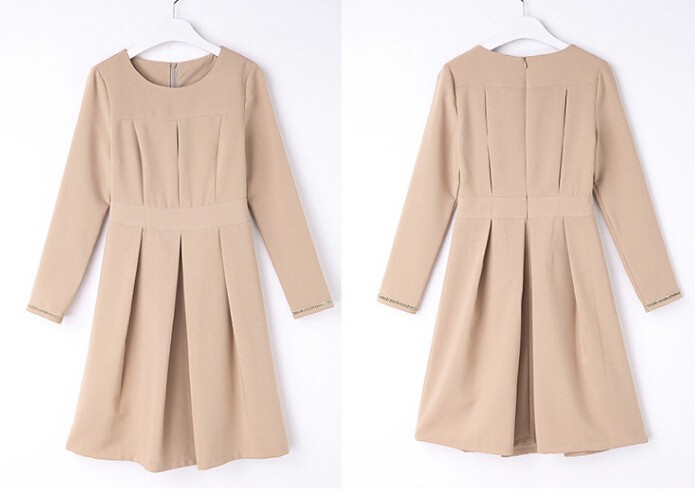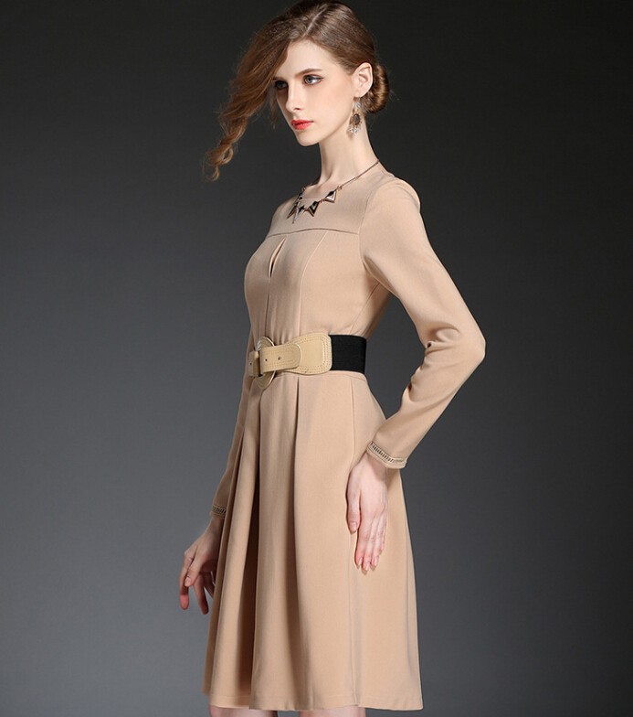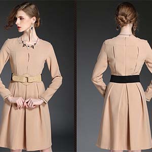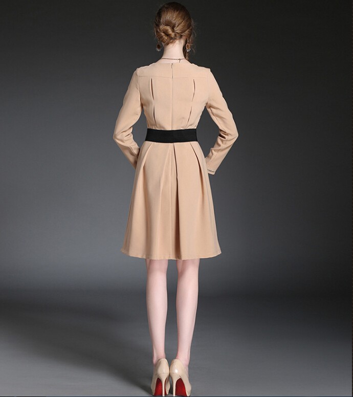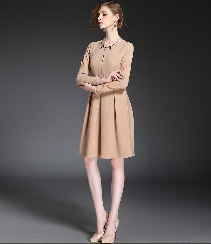 お呼ばれにも ベージュのオーソドックスな膝丈ドレス【S-U3608-ZC2103】