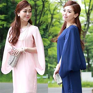 & Free Shipping二の腕カバーできるケープ袖デザイン