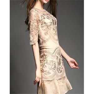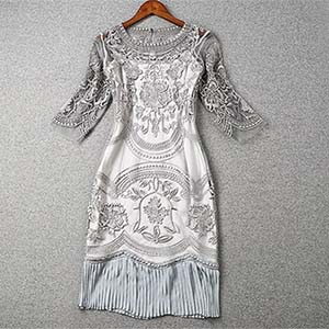 セレブ ゴージャス感の光沢あるグレーのレースドレス [Y-W75]