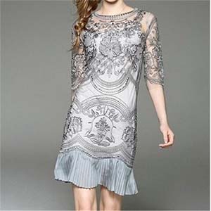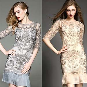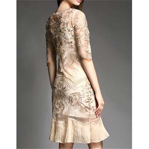 セレブ的 ゴールド 総レースのタイトワンピース[Y-W75B]