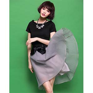 & Free Shippingシフォンスカートが可愛い バイカラーセットアップ