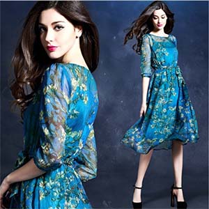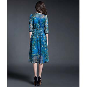 ワンピース お呼ばれ 二次会 結婚式 パーティー 春 夏 袖付き 花柄 フラワー シフォンワンピ ミモレ丈 20代 30代 40代 50代 N