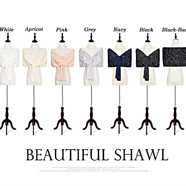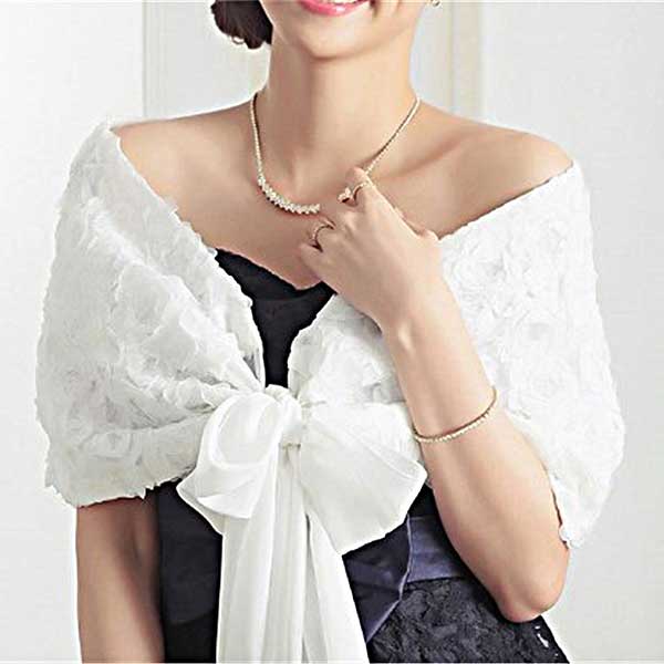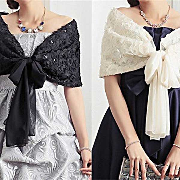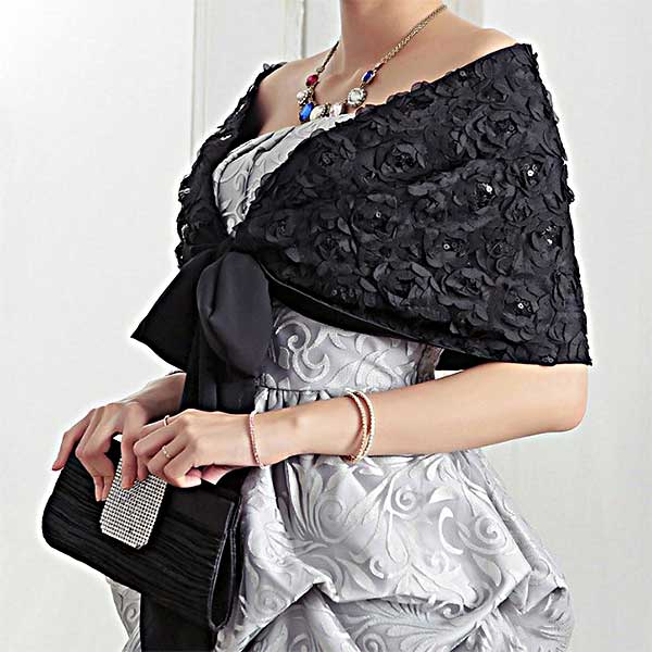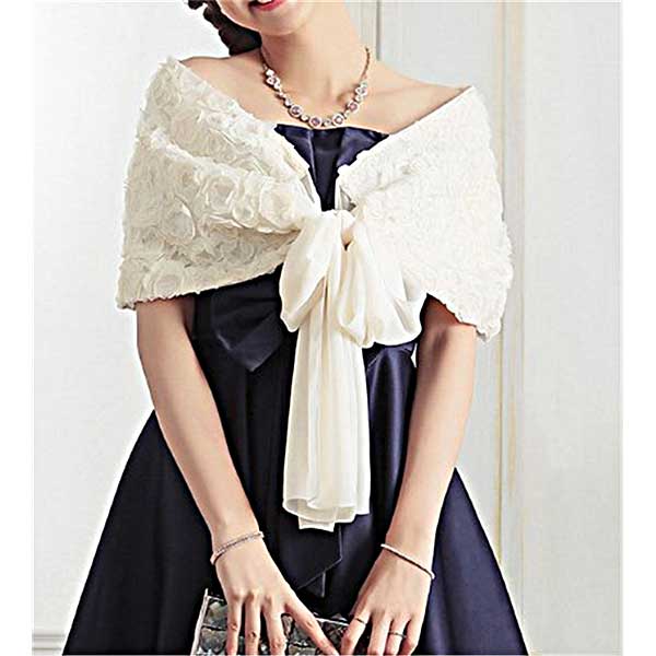お花モチーフが可愛いシフォンのショール。結婚式、パーティ、二次会などパーティワンピースの羽織りにお勧めです。