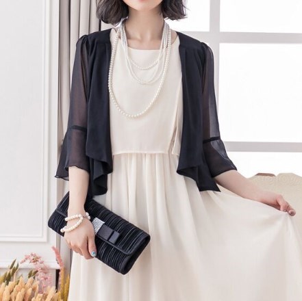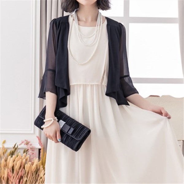 ボレロ ショール ストール 結婚式 パーティー 二次会 お呼ばれ 羽織り 長袖 シフォン ショート丈ジャケット