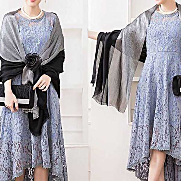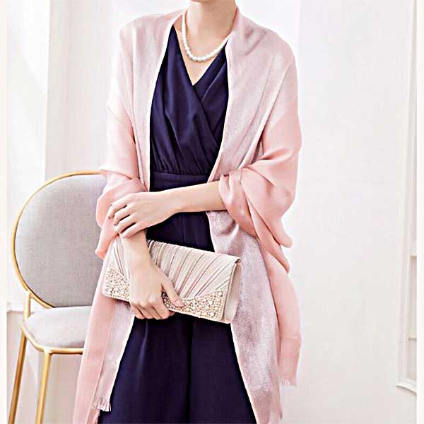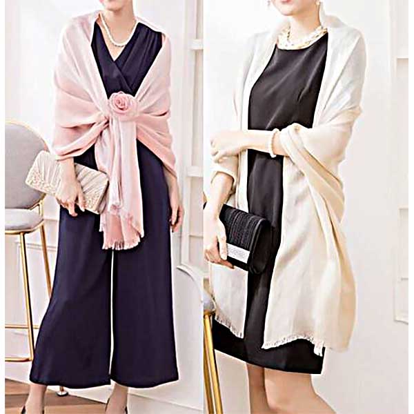 ニュアンスカラーでどんなドレスにも合わせやすいショール長めの丈にコサージュ付きで様々なアレンジを楽しめます。・サイズ(単位cm)長さ200 幅77
