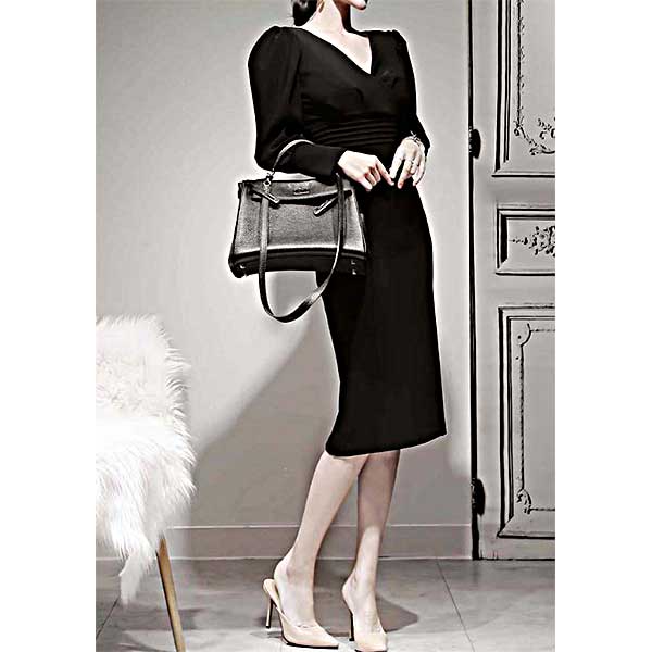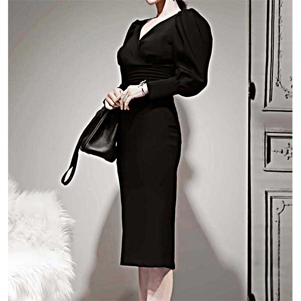 パーティードレス ワンピース タイト ミディ丈 無地 カシュクール