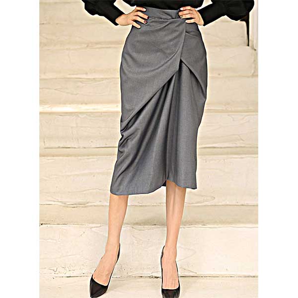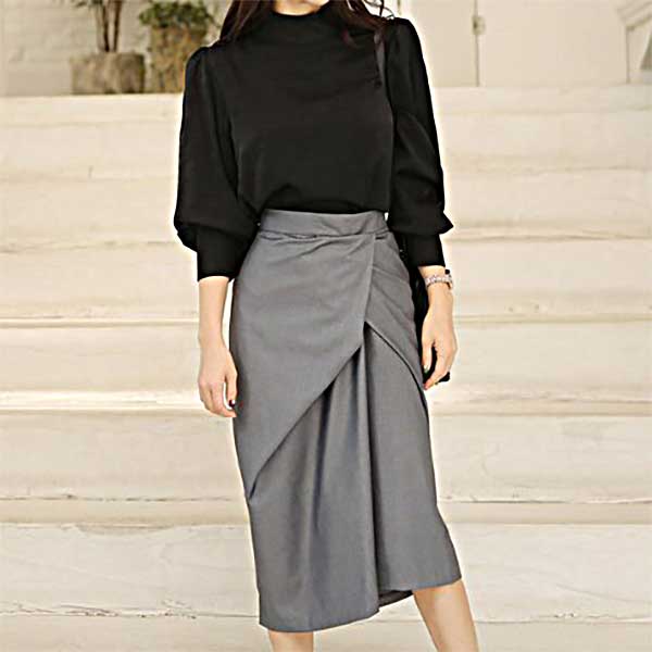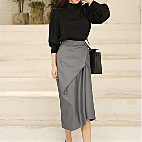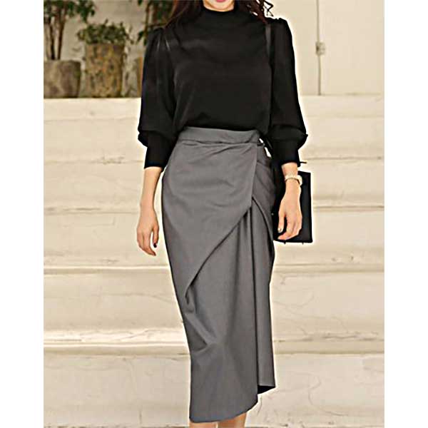 セットアップ タイト ミディ丈 無地 ラップスカート ハイネック