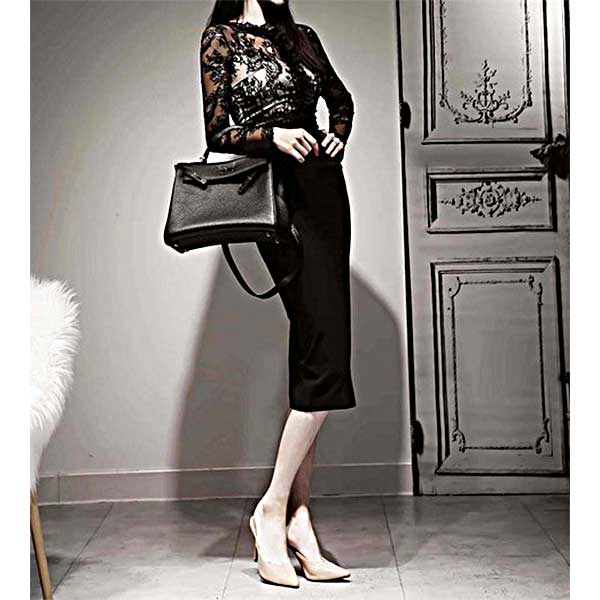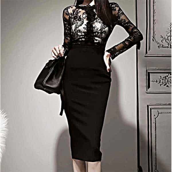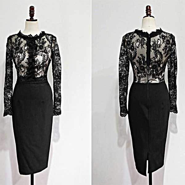レース 黒 ひざ丈 セクシー 長袖のタイトワンピース[OH111B]